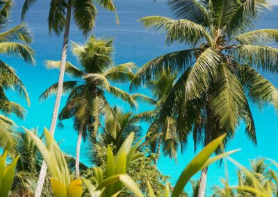 Praslin, a soli quindici minuti di volo da Mahé, conosciuta per la sua Vallée de Mai, una foresta antichissima a lungo creduta il Giardino dell’Eden, ove il coco de mer, il seme più grande al mondo, cresce a profusione.