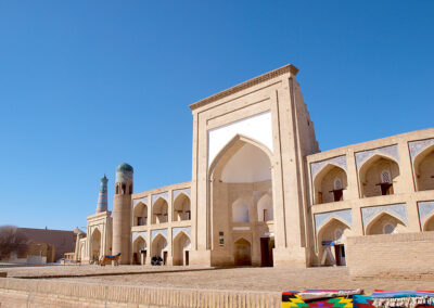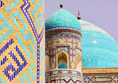 Khiva, Bhukara, Samarcanda: tre gioielli ricche di moschee e medrasse che colpiscono e restano impressi per la loro architettura, l’azzurro intenso delle maioliche e l’oro delle decorazioni.