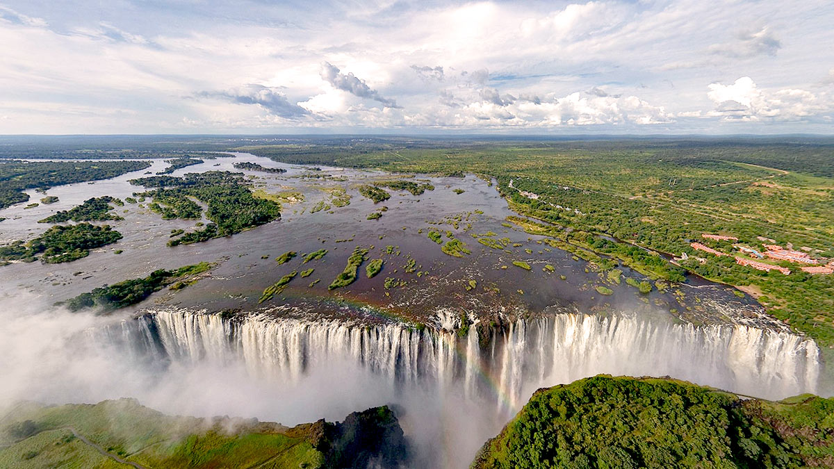 Formate dal fiume Zambesi, che qui marca il confine geografico e politico fra Zambia e Zimbabwe, le cascate hanno un fronte di oltre un chilometro e mezzo e compiono un salto di 128 metri. La loro spettacolarità è dovuta alla particolare geografia del luogo, una gola profonda e stretta, che consente di ammirare l’intero fronte dall’altra sponda situata esattamente davanti al salto.